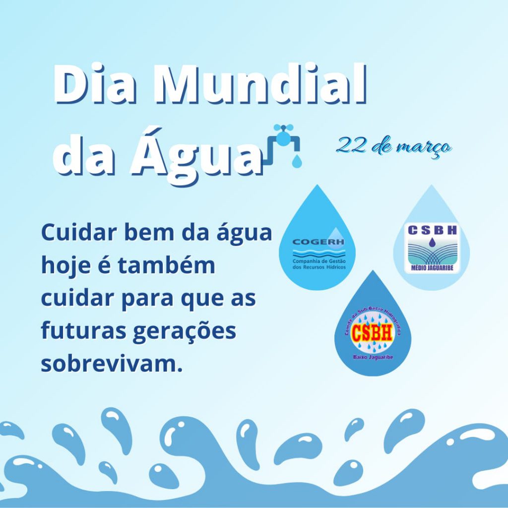 ? Dia Mundial da Água ? 22 de Março, é celebrado o Dia Mundial da Água. A data visa conscientizar as pessoas sobre o desperdício de recursos hídricos e sobre a importância de poupá-los. (Fonte: Agência Brasil)